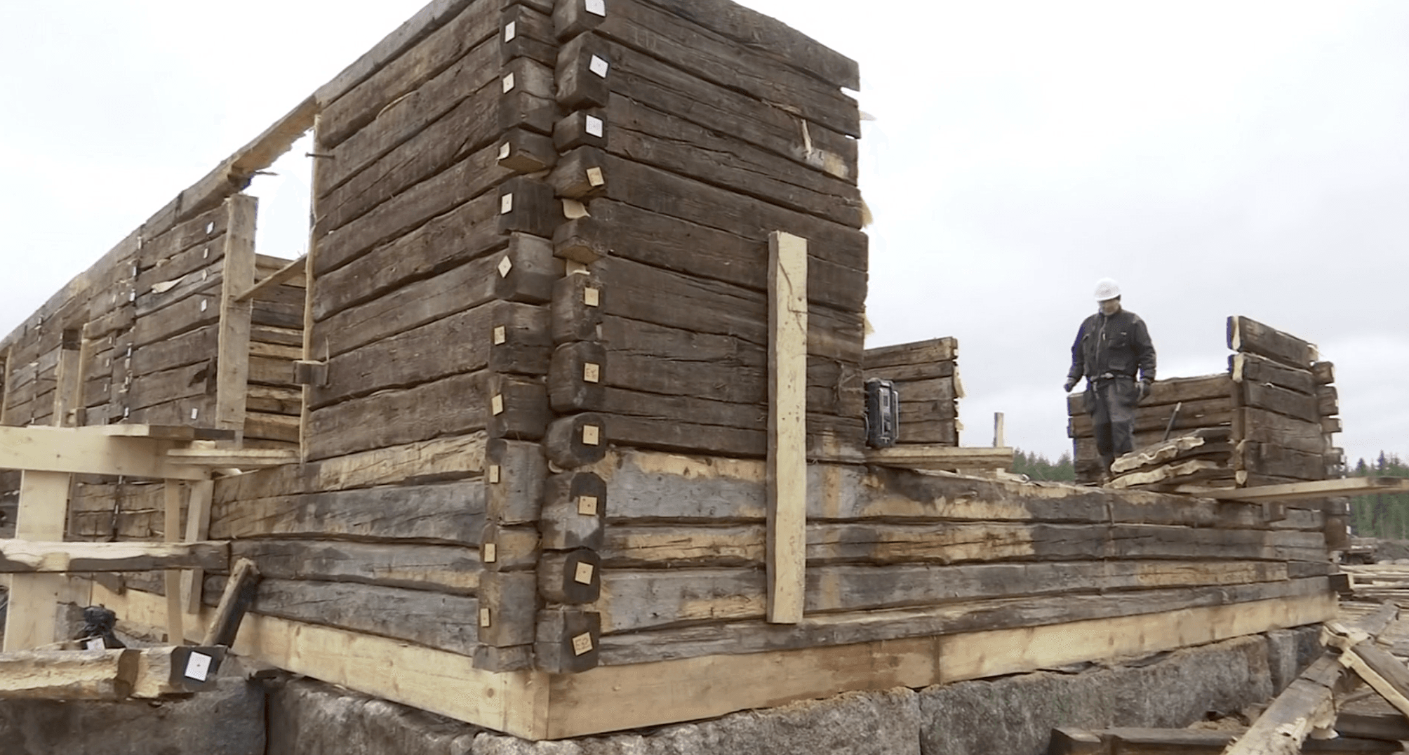 ”Täällä on uusi hirsirakennus jo ensimmäisessä kerroksessa kohta. Vielä toinen päälle!”
