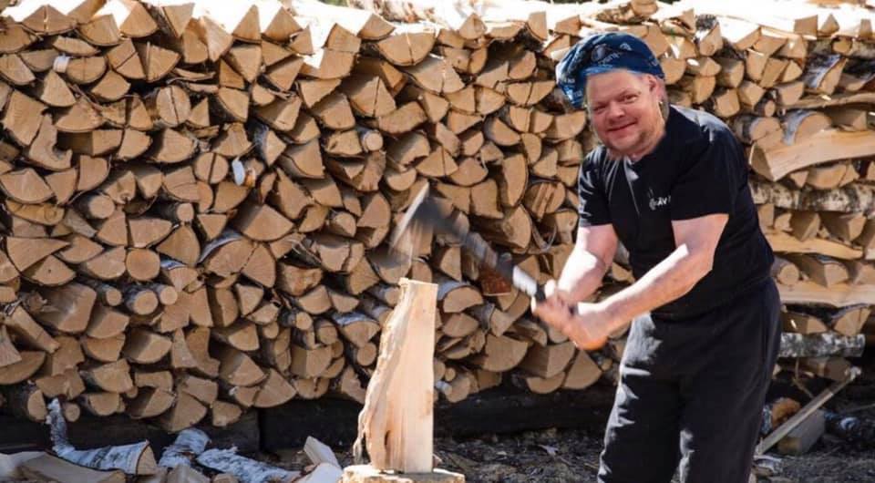 Jukkis Rissanen näytti muille mallia halonhakkuussa, joka on näiden kesäolympialaisten uutuuslaji. ”Ensimmäiseksi lajiksi valikoitui halonhakkuu, jossa jokainen tekee tunnin polttopuita ja lopuksi lasketaan motit! Jukkis asetti riman!”