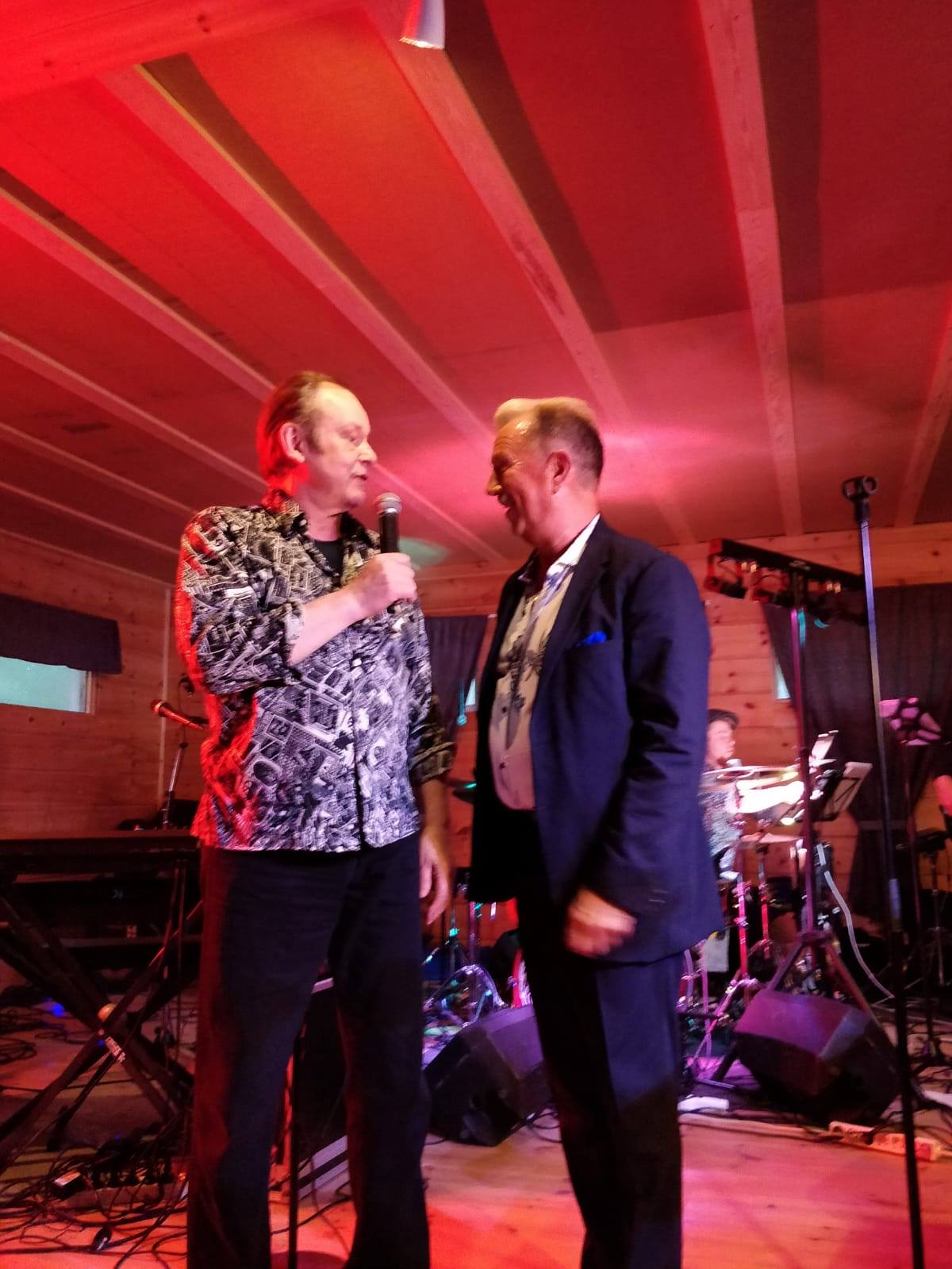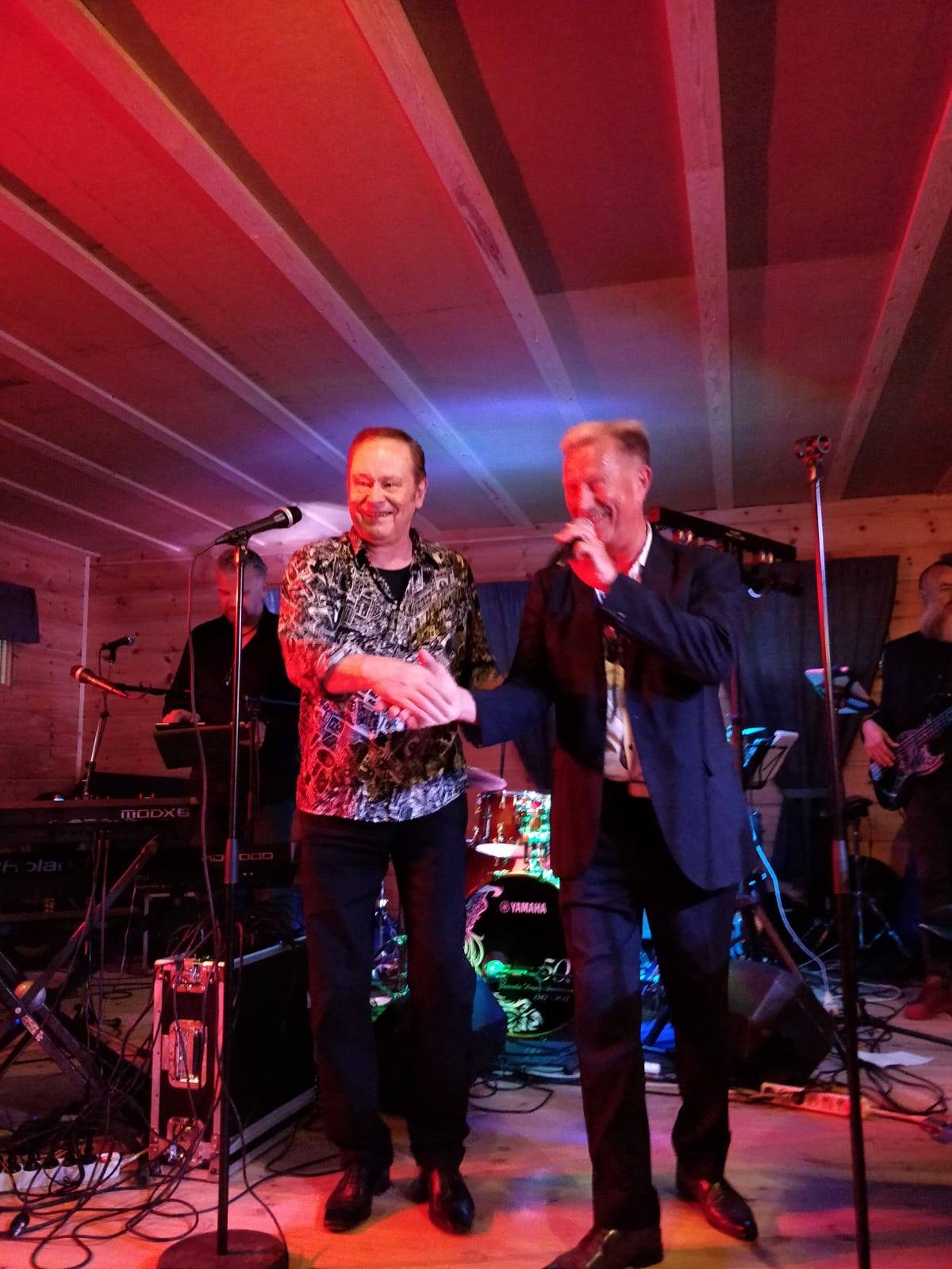 Tapani Kansa ja Lasse Hoikka nauttivat yhteisistä hetkistä Suukosken keitaan lavalla. Kuva: Facebook.