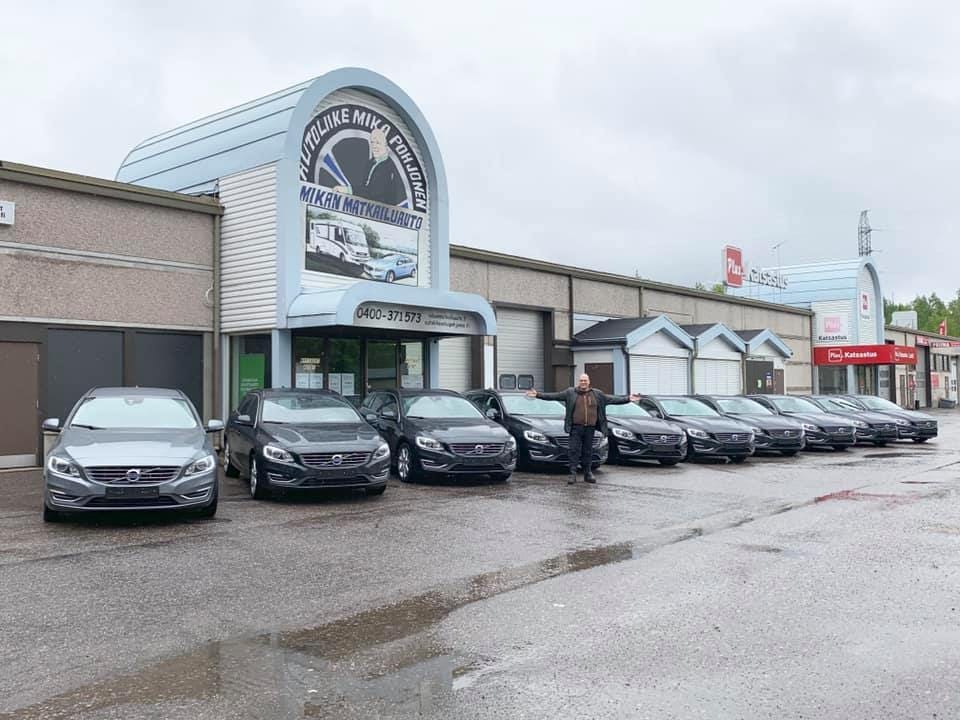 Tangokuningas Mika Pohjonen riemuitsee autoliikkeensä pihassa Lahdessa: liikevaihto paisui miljooniin. Kuva: Facebook.